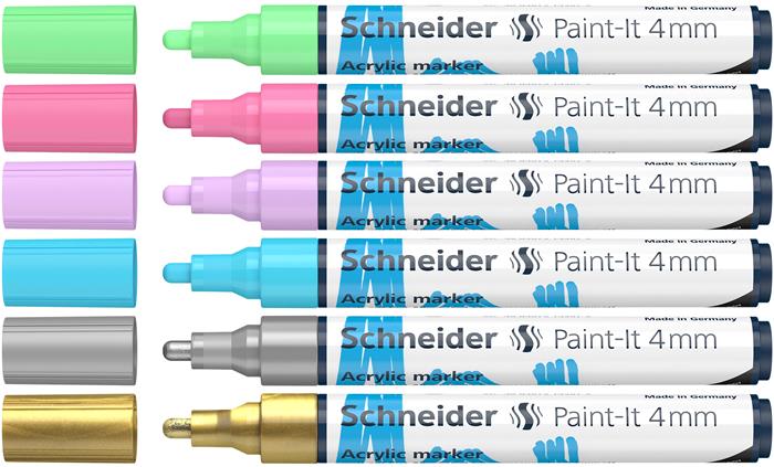 Akrylový popisovač, sada, 4 mm, SCHNEIDER "Paint-It 320", 6 rôznych farieb