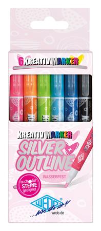 Popisovač, sada, 1-2 mm, metalická strieborná, WEDO, so 6 rôznymi farebnými kontúrami