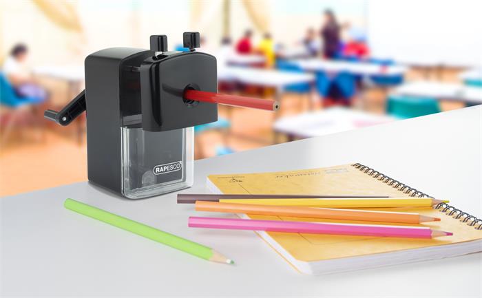 Stolné strúhadlo na ceruzky Rapesco 94 je štýlové, vysoko funkčné strúhadlo s mnohými funkciami