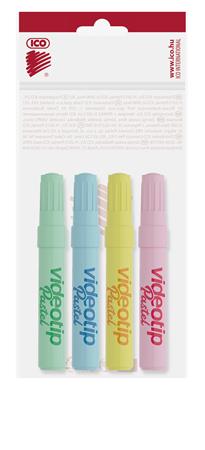 Zvýrazňovač, sada, 1-4 mm, ICO "Videotip", 4 rôznych pastelových farieb