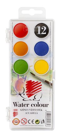 Vodové farby, 12 farieb, priemer kruhov: 22,5 mm, ICO "Ježko"