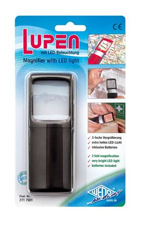 Lupa, 35x38 mm, s LED svetlom, WEDO, čierna