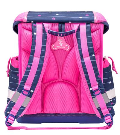 Ergonomický dizajn: -Ergonomicky tvarovaná školská taška s priedušným, polstrovaným chrbtovým systémom, ktorý zabezpečuje maximálne pohodlie a pomáha predchádzať bolestiam chrbta. Ergonomickú vhodnosť potvrdzuje aj certifikát nemeckého inštitútu AGR. Nastaviteľné popruhy: -odnímateľný a nastaviteľný hrudný popruh, nastaviteľné ramenné popruhy pre dokonalé prispôsobenie -stabilné a pohodlné nosenie -polstrované ramenné popruhy v tvare S, prispôsobiteľné postave dieťaťa, zabezpečujú optimálne usadenie a komfort pri nosení. Premyslený vnútorný priestor: -tri priestranné vnútorné priehradky vhodné aj na zošity a knihy formátu A4, vďaka čomu majú všetky školské potreby svoje miesto – dve bočné vrecká na dáždnik alebo 0,7 l fľašu na vodu. Praktické bočné vrecká:Dve bočné vrecká sú ideálne na uloženie dáždnika alebo 0,7 l fľaše na vodu a umožňujú rýchly a jednoduchý prístup. Jednoducho ovládateľná pracka: -ľahko otvárateľná kovová pracka s reflexným prvkom, ktorý zvyšuje viditeľnosť a bezpečnosť dieťaťa v cestnej premávke. Superľahká konštrukcia: -hmotnosť tašky je len 930–990 g, takže zbytočne nezaťažuje ramená ani chrbát dieťaťa. Európska výroba: Produkt je navrhnutý a vyrábaný rodinnou firmou v Európe už od roku 1965, čo zaručuje jeho vysokú kvalitu a spoľahlivosť. Ideálna voľba pre rodičov, ktorí kladú dôraz na ergonomickú, bezpečnú a ľahkú školskú tašku pre svoje dieťa.
