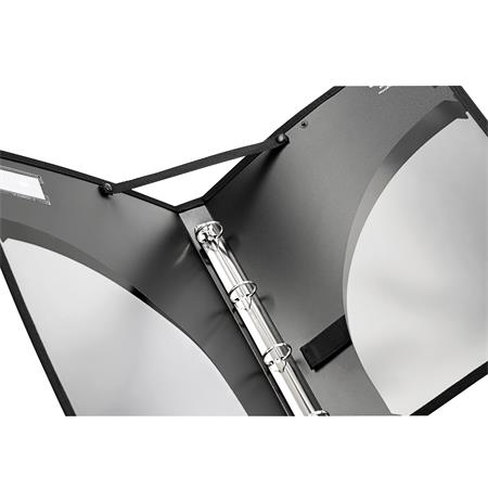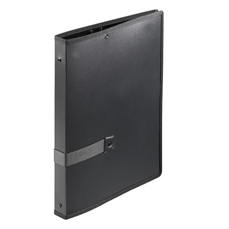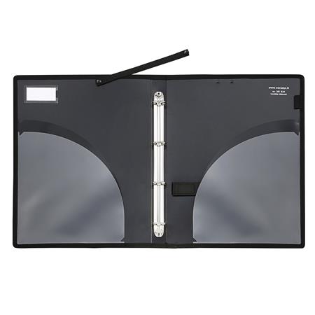 Krúžková doska Viquel - rozmer: 27,5x34,5x3 cm - 4-krúžkový dizajn, priemer krúžka 2,5 cm - nastaviteľný zadný popruh pre pohodlné uchopenie - 2 dvojité vrecká - pútko na pero na boku - držiak na vizitky - fixačný popruh - farba: čierna