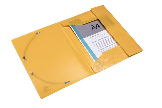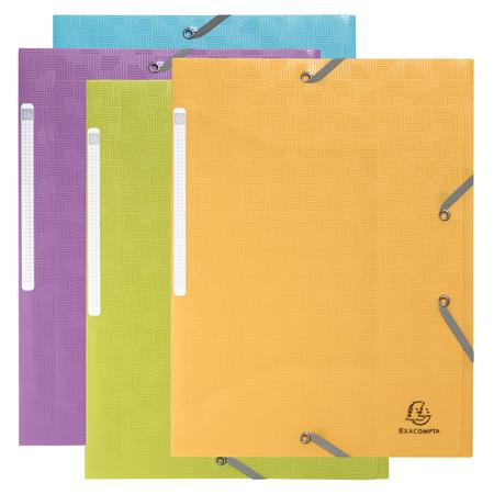 Prémiová doska s gumičkou na dlhodobé použitie! -ideálna voľba na používanie v škole, doma alebo v menšej kancelárii-určená na uloženie dokumentov formátu A4 -0,5 mm PP PP materiál -uzatváranie pomocou gumičky umiestnenej v rohoch -3 vnútorné chlopne pre bezpečné uloženie dokumentov -kapacita: približne 250 listov (80 g/m2) -chrbtový štítok pre jednoduchú identifikáciu obsahu -mix farieb, farba sa nedá vybrať (cyánová, fialová, lime, mango) -vyrobená z materiálu s certifikátom Blu Angel