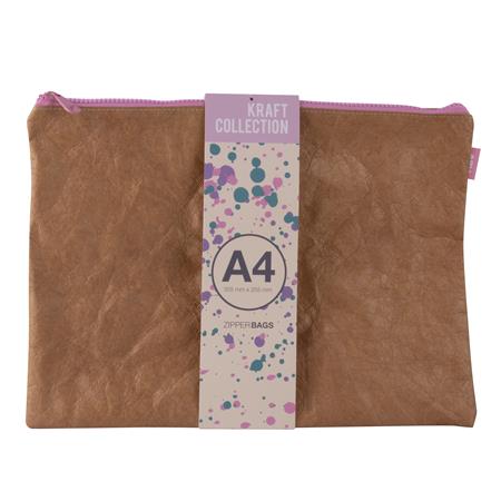 Puzdro na drobnosti, na zips, textúra koženého efektu, plast, A4, APLI "Kraft", zips rôznych farieb