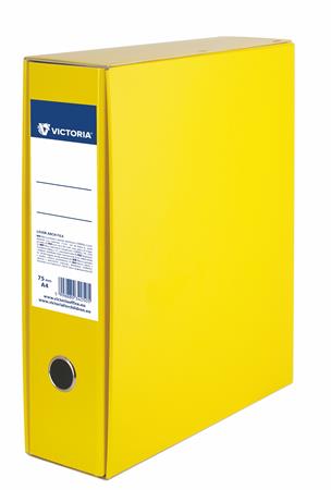 Pákový šanón s obalom, 75 mm, A4, kartón, VICTORIA OFFICE, žltý