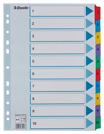 Register, kartón, A4, 1-10, ESSELTE "Mylar"