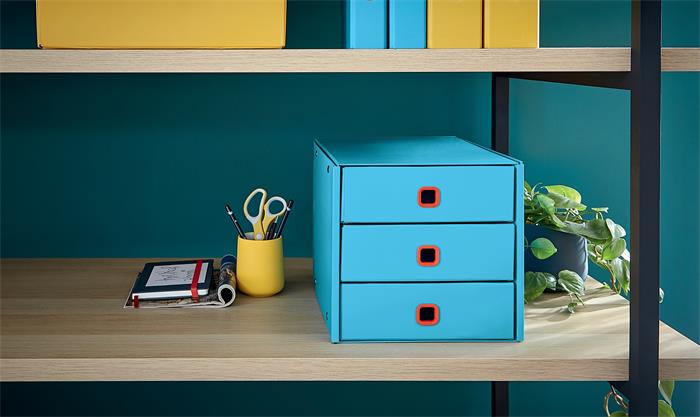Zásuvkový box, laminovaný kartón, 3 zásuvky, LEITZ "Cosy Click&Store", pokojná modrá
