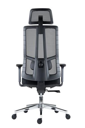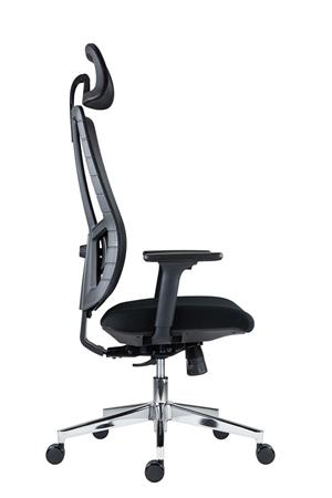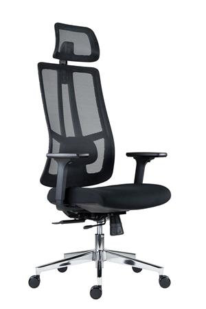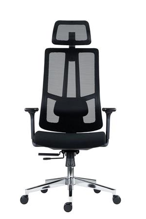 Ergonomická kancelárska otočná stolička s opierkou hlavy! -sieťovaný operadlo s nastaviteľnou výškou -nastaviteľná výška a uhol sklonu opierky hlavy -2D bedrová opierka (výška, hĺbka) -3D opierky rúk: nastaviteľná výška, otočné, posuvné dopredu-dozadu, mäkká oporná plocha -čalúnené sedadlo z tvarovanej peny -nastaviteľná hĺbka sedadla - 4 bodová synchronizačná mechanika (antishock) -chrómovaný podstvec O 640 mm, kolieska O 60 mm na parketové podlahy -nosnosť: 130 kg -odporúčaná denná doba používania: 5–7 hodín -celková výška: 121–138,5 cm -výška sedadla: 44–51,5 cm -celková šírka: 66 cm -šírka sedadla: 48,5 cm -hĺbka sedadla: 49–54 cm