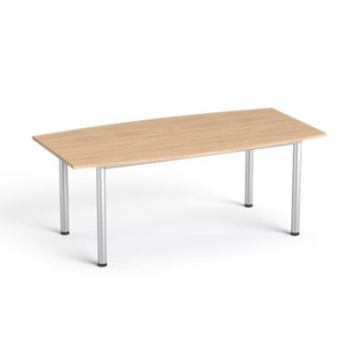 zakrivený konferenčný stolík s kovovými nohami