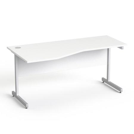 Písací stôl, oblúkový, ľavý, so sivými kovovými nohami, 160 × 80 cm, MAYAH „Freedom SV-30“, biela