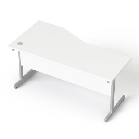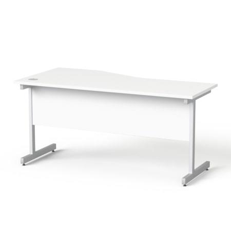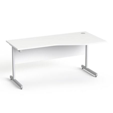 Písací stôl, oblúkový, pravý, so sivými kovovými nohami, 160 × 80 cm, MAYAH „Freedom SV-29“, biela