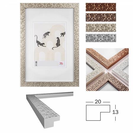 Mozaikový obrazový rám s elegantným lesklým povrchom. -strieborná farba -s podperou -s okrajom šírky 20 mm - pre obrazy o rozmeru 10x15 cm