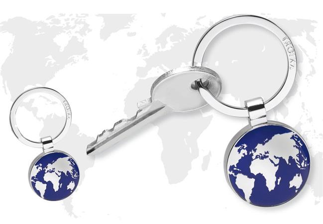 Kľúčenka so smaltovaným, lesklým vzorom zemegule - s robustným drôteným pútkom - kvalitná kľúčenka, s ktorou zaručene nestratíte svoje kľúče