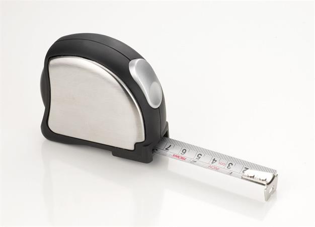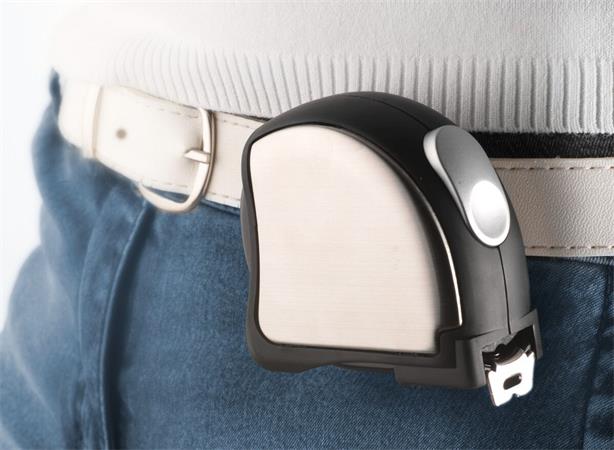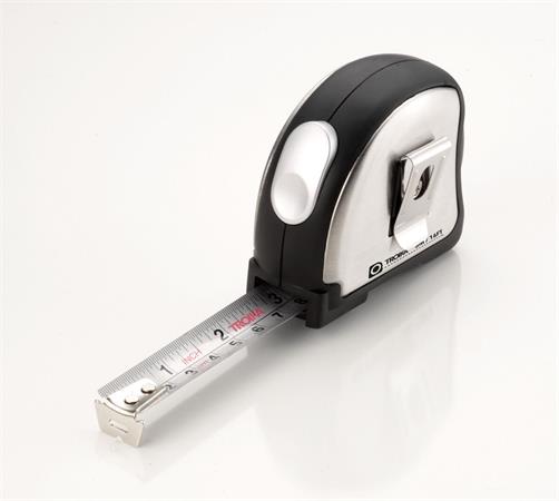 Zvinovací meter 5 m z karbónovej ocele a plastu ABS v ergonomickom tvare s klipom na opasok. Mierka v centimetroch a palcoch.