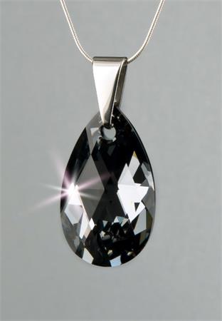 Náhrdelník, so SWAROVSKI® krištáľom, prívesok kvapka, Black Diamond, 16mm, ART CRYSTELLA