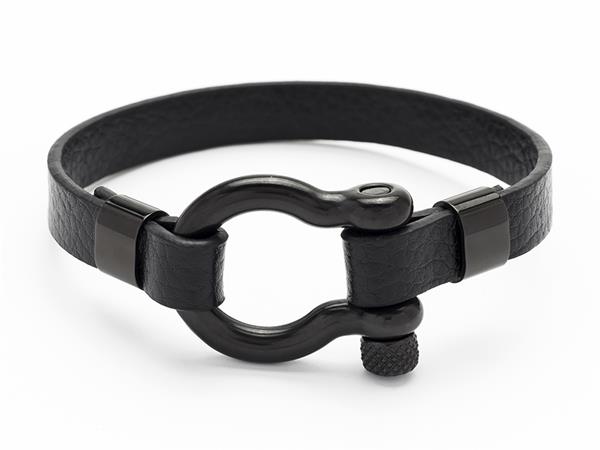 Náramok, čierna koža, karabínový zámok, 22 cm, ART CRYSTELLA®