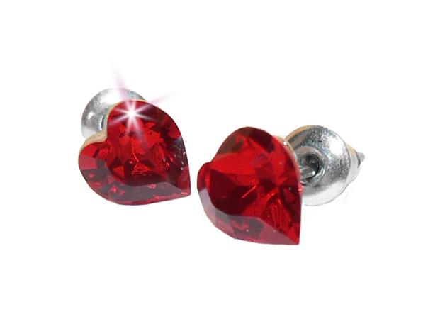 Náušnice, v tvare srdiečka, s light siam červeným krištáľom SWAROVSKI®, 8 mm, ART CRYSTELLA®