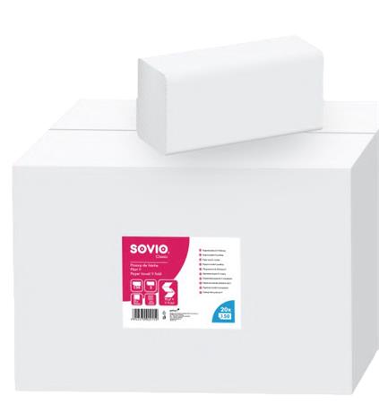Sovio papierové utierky s „V“ ohybom sú vysoko kvalitné, mäkké papierové utierky, ktoré vďaka svojej vysokej savosti predstavujú ideálne riešenie pre toalety s veľkou návštevnosťou, reštaurácie a inštitúcie.
