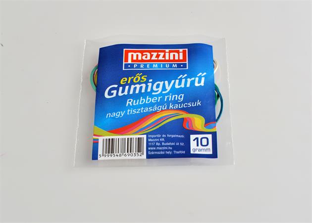 Viacfarebné, 70% s obsahom kaučuku, gumičky vyššej čistoty. - priemer: 20 mm, 30 mm a 40 mm - hrúbka: 1,5 mm - v rôznych farbách - o 20 % lepšia pevnosť v ťahu a o 60 % väčšia rozťažnosť oproti štandardným gumičkám - uchovávať na suchom a tmavom mieste, mimo dosahu svetla, skladované a chránené si zachová svoju flexibilitu niekoľko rokov