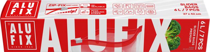 ALUFIX ZIP-FIX zipsové vrecká na potraviny sú praktické a opakovane uzatvárateľné tašky, ktoré sú ideálne na skladovanie potravín. Produktová rada Zipp Fix je dostupná v rôznych veľkostiach.