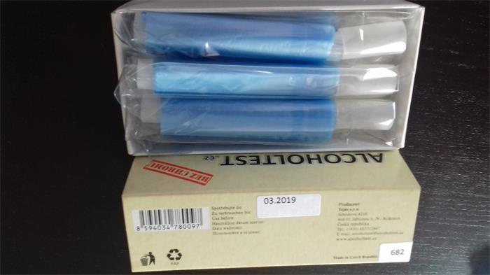Alkohol tester, trubičky, dychová skúška, jednorazový