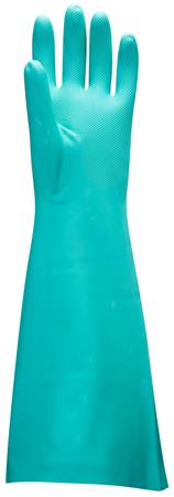 Ochranné rukavice, nitrilové, chemicky odolné, dlhý rukáv, XL, zelená