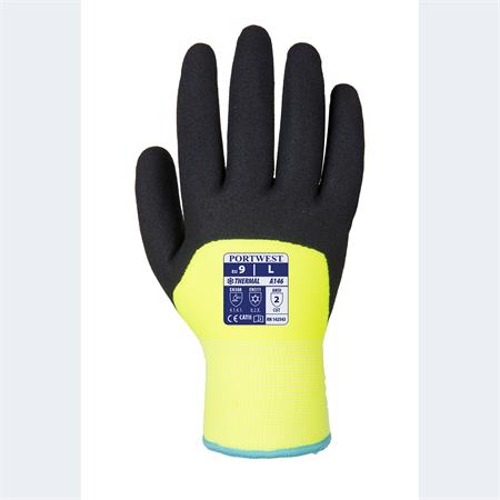 Ochranné rukavice, zimné, dvojitá podšívka, nitril, máčané, veľkosť XL, žlto-čierne