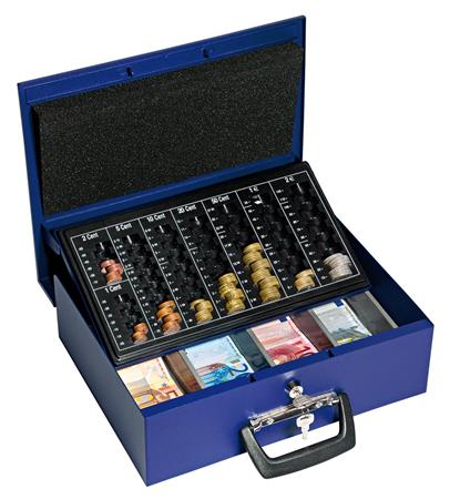 Pokladnička na euro bankovky a mince, 35,5 x 27,5 x 10 cm, WEDO "UNIVERSA", modrá