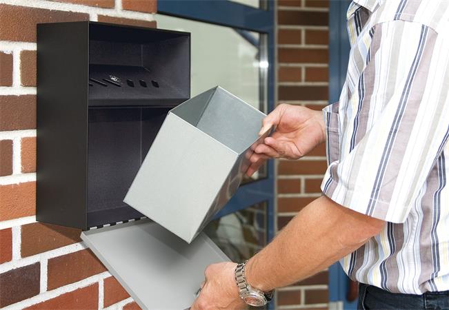 Hlavná stránkaPrevádzka a údržbaPrevádzka a údržbaOdpadkové koše a popolniceNástenný popolník, oceľ, 6 otvorov, so strieškou, WEDO, sivá/čierna