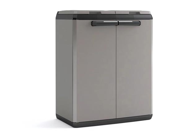KETER Split odpadkový kôš/skrinka na triedený odpad vďaka praktickému dizajnu a modernému tmavosivému/čiernemu vzhľadu štýlovo a jednoducho prispieva k ochrane životného prostredia. -vhodná na uloženie dvoch vriec s objemom do 110 litrov -vyrobená z polypropylénu, odolná voči mechanickému poškodeniu a poveternostným vplyvom, takže ju možno umiestniť v interiéri aj exteriéri, napríklad na krytej terase -ľahko sa čistí - jednoduchá montáž -vybavená dvoma hornými vekami so špeciálne tvarovanými otvormi pre jednoduché otváranie - predné dvojkrídlové dvierka s pohodlnými úchytkami -rozmery: 39x68 x85 cm (šírka x hĺbka x výška) -hmotnosť: 5,45 kg - vrecia nie sú súčasťou balenia