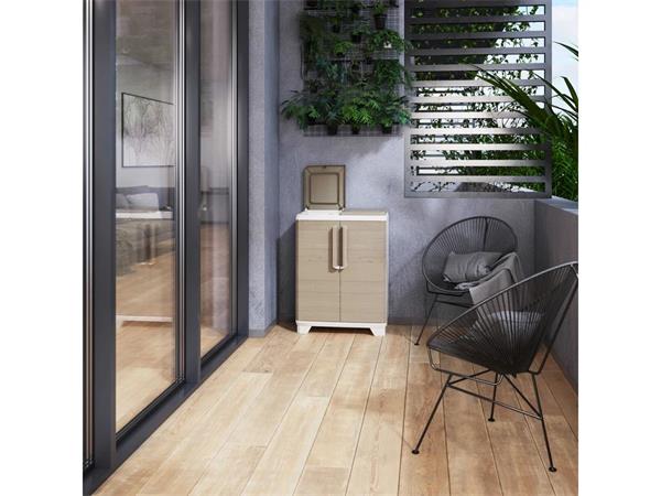 KETER Split Premium Wood štýlovo a jednoducho prispieva k ochrane životného prostredia.Svetlobéžová a žltá farba evokuje prírodné drevo, esteticky sa hodí do každého priestoru.  -vhodná na uloženie dvoch vriec s objemom do 110 litrov -vyrobená z polypropylénu, odolná voči mechanickému poškodeniu a poveternostným vplyvom, takže ju možno umiestniť v interiéri aj exteriéri, napríklad na krytej terase -ľahko sa čistí - jednoduchá montáž -vybavená dvoma hornými vekami so špeciálne tvarovanými otvormi pre jednoduché otváranie - predné dvojkrídlové dvierka s pohodlnými úchytkami - s nastaviteľnými nohami -rozmery: 39x68 x92 cm (šírka x hĺbka x výška) -hmotnosť: 6,07 kg - vrecia nie sú súčasťou balenia