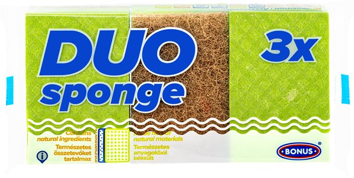 BONUS Duo umývacia špongia  bez poškriabania  dokonale spája výhody abrazívnej a špongiovej handričky. S abrazívnou vrstvou možno šetrne odstrániť aj tie najodolnejšie zaschnuté zvyšky jedla. Špongiová handrička s desaťnásobnou schopnosťou absorpcie vlhkosti umožňuje ľahko zotrieť kuchynskú linku alebo jedálenský stôl. Jedinečným tvarom zaručuje ergonomické použitie. Rozmery: 9,5x7x3,5 cm. 2 ks/balZnačka: BONUS