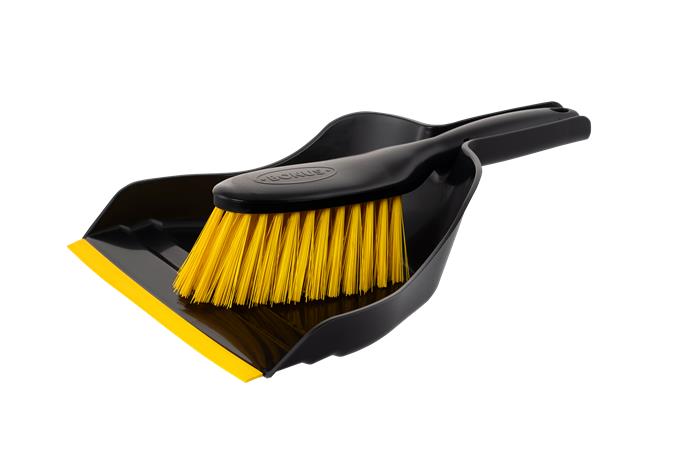 Ergonomicky navrhnutá, odolná súprava ručného zmetáku a lopaty, ktorú možno pripnúť aj na násadu metly. Poskytuje ľahké a dôkladné čistenie v každej miestnosti domácnosti, dokonca aj v garáži alebo dielni. Môže byť všestranným a pohodlným doplnkom každej skrinky na čistenie. -kvalitné, zhrubnuté prevedenie -čepeľ s gumovým okrajom -farba plastu: čierna -farba štetín a gumeného okraja: žltá