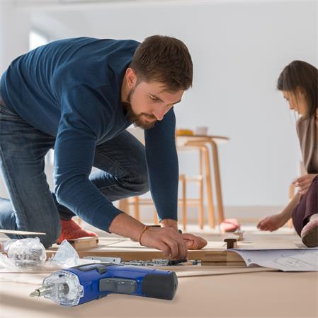 Kompaktný, praktický elektrický skrutkovač, ktorý je nevyhnutným doplnkom každej domácnosti.