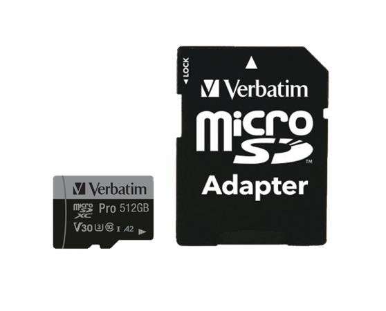 Pamäťová karta, microSDXC, 512 GB, CL10/U3/A2, 100/90 MB/s, s adaptérom, VERBATIM "PRO"