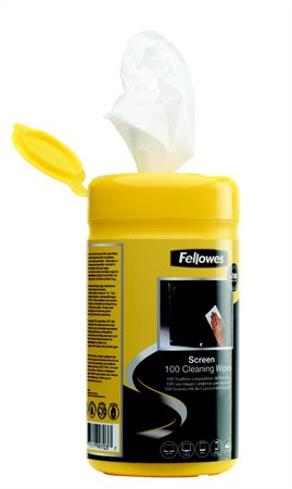 biologicky rozložiteľné čistiace utierky nasiaknuté špeciálnym čistiacim prostriedkom, vhodné na čistenie TFT/LCD/CRT monitorov, obrazoviek tabletov, notebookov, smartphonov a sklenených povrchov skenerov, balenie: 100 ks/bal