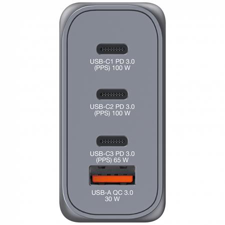 Podporuje súčasné nabíjanie až 4 zariadení (s maximálnym výkonom 100 W). So svojimi skladacími americkými stopkami a vymeniteľnými zástrčkami pre EÚ a Spojené kráľovstvo je dokonalým spoločníkom na cesty. -Gallium Nitride (GaN) technológia: poskytuje vysoký výkon, rýchle a efektívne nabíjanie a produkuje menej tepla -2 x USB-C® PD 3.0 až 100 W -1 x USB-C® PD 3.0 až 65 W -1 x USB -A QC 3.0 až 30 W - super-rýchle nabíjanie pomocou USB Power Delivery 3.0, PPS a Quick Charge 3.0 - technológia programovateľného napájania (PPS) poskytuje správne množstvo energie pre ideálne nabíjanie - vyrobené z vysokokvalitného plameňa- odolné materiály - nadprúdová ochrana -prepäťová ochrana -skratová ochrana -ochrana proti prehriatiu -materiál: Plast Telo: PC Ohňovzdorný materiál -rozmery: 77,5 x 61,1 x 29,3 mm (Š x V x H) -hmotnosť: 226 g -balenie bez plastov - obsah balenia: GaN nabíjačka EU adaptér UK adaptér Stručný návod na spustenie