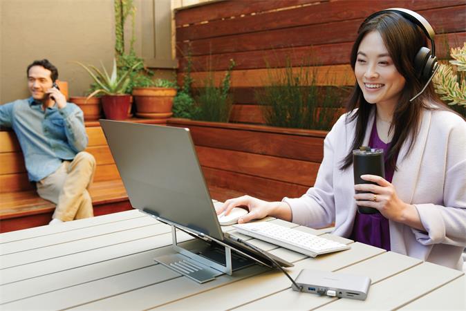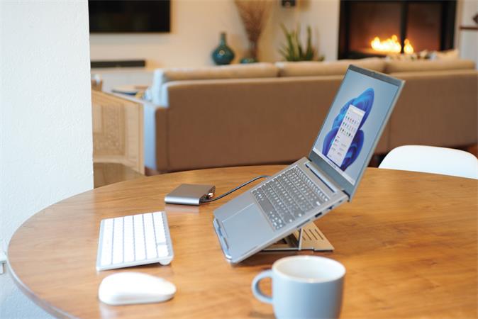 Nastaviteľný stojan na notebook Easy Riser™ sa ľahko prenáša, je odolný a vyrobený z recyklovateľného a udržateľného materiálu. - skladací - 6 úrovní nastavenia výšky/uhlu: výšku možno nastaviť medzi 86 - 118 mm / uhol možno nastaviť medzi 22 - 33 stupňami - otvorený dizajn vetrania: podporuje cirkuláciu vzduchu, zlepšuje výkon notebooku a výdrž batérie - anti- protišmykové silikónové podložky: chránia notebook pred poškriabaním a udržujú zariadenie na mieste pri práci - bezpečnostný nárazník pomáha zabrániť skĺznutiu zariadení - možno použiť aj s 16" notebookom s hmotnosťou 5 kg - hmotnosť: 0,4 kg