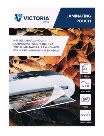 Laminovacia fólia, laminovateľná za tepla, 125 mikr., A4, lesklá, VICTORIA OFFICE