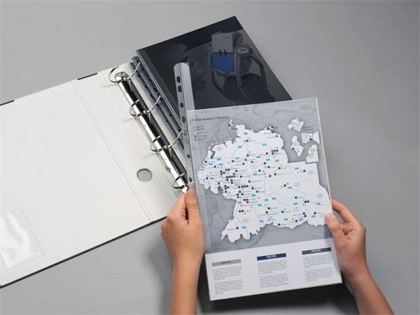 Násuvná lišta na zakladanie dokumentov bez preliačenia, s zaoblenými rohmi, ktoré uľahčujú vloženie papiera. Kapacita: približne 60 listov. Materiál: plast. Formát: A4. Orientácia: vertikálna/horizontálna. Vonkajšie rozmery: 145 x 297 mm (šírka x výška). Dĺžka zápästia: 14,5 mm. Výška plnenia: 6 mm. Vyrobené z recyklovateľného materiálu.