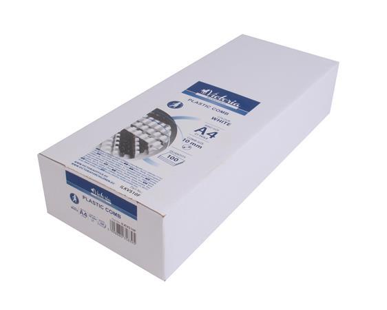Hlavná stránkaTechnologické výrobkyKancelárska technikaŠpirálová väzbaHrebeň, plastový, 10 mm, 41-55 listov, VICTORIA OFFICE, biely