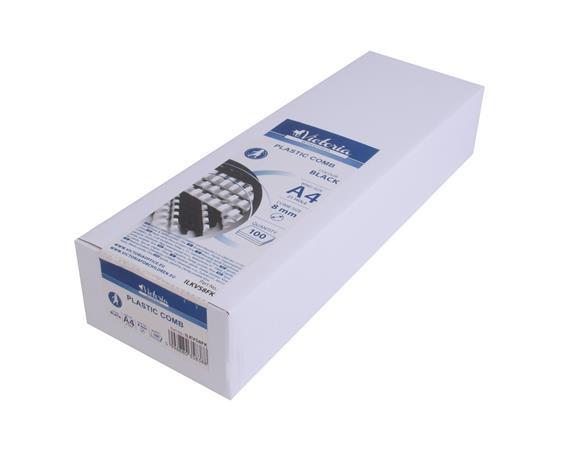 Hlavná stránkaTechnologické výrobkyKancelárska technikaŠpirálová väzbaHrebeň, plastový, 8 mm, 21-40 listov, VICTORIA OFFICE, čierny