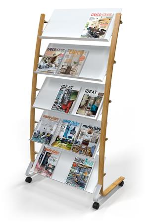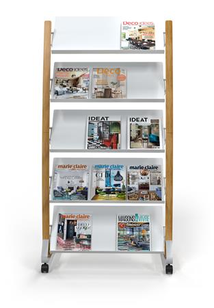 Hlavná stránkaTechnologické výrobkyPrezentáciaDržiaky na prospekty, stojany, prezentačné tabuleDržiak na katalógy, mobilný, 5x3 priehradky, ALBA, drevo/biela