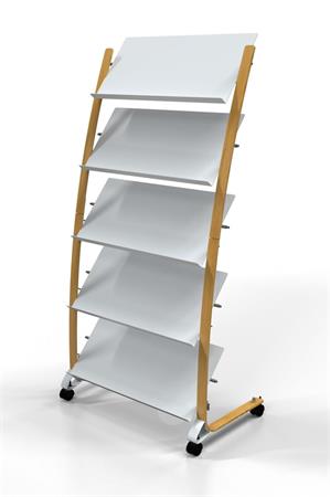 Elegantný dizajn s kombináciou materiálov dreva a ocele, ľahko viditeľný obsah. - kovový stojan s plastovými policami - pojazdný stojan so 4 kolieskami (2 uzamykateľné) - 5x3 priehradky na dokumenty A4 (24x32 cm) - hĺbka priehradky: 3 cm - jednoduchá montáž, sada na upevnenie je súčasťou balenia - kompaktné balenie s cieľom znížiť Emisie CO2 - šetrné k životnému prostrediu a 100% recyklovateľné