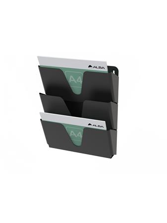 Držiak na prospekty, kovový, nástenný, horizontálny, A4, 3 priečinky, ALBA, čierny