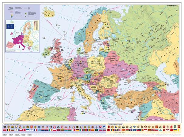Nástenná mapa, 70x100cm, kovová lišta, Európske krajiny a Európska únia, STIEFEL- výrobok v MJ