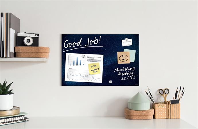 Hlavná stránkaTechnologické výrobkyPrezentáciaTabuleMagnetická sklenená tabuľa, 60x40x1,5 cm, SIGEL "Artverum® ", vzor: Galaxy