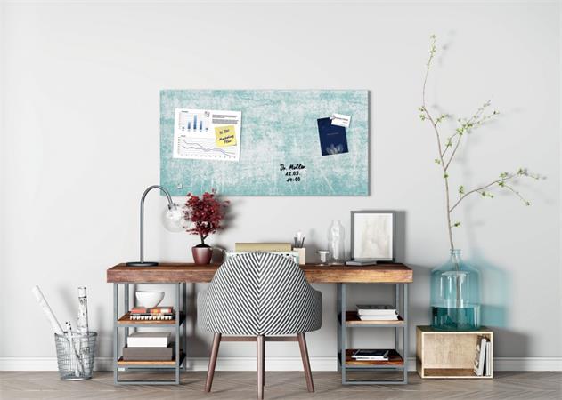Magnetická sklenená tabuľa, 91x46x1,5 cm, SIGEL "Artverum® ", vzor steny, tyrkysová, matná